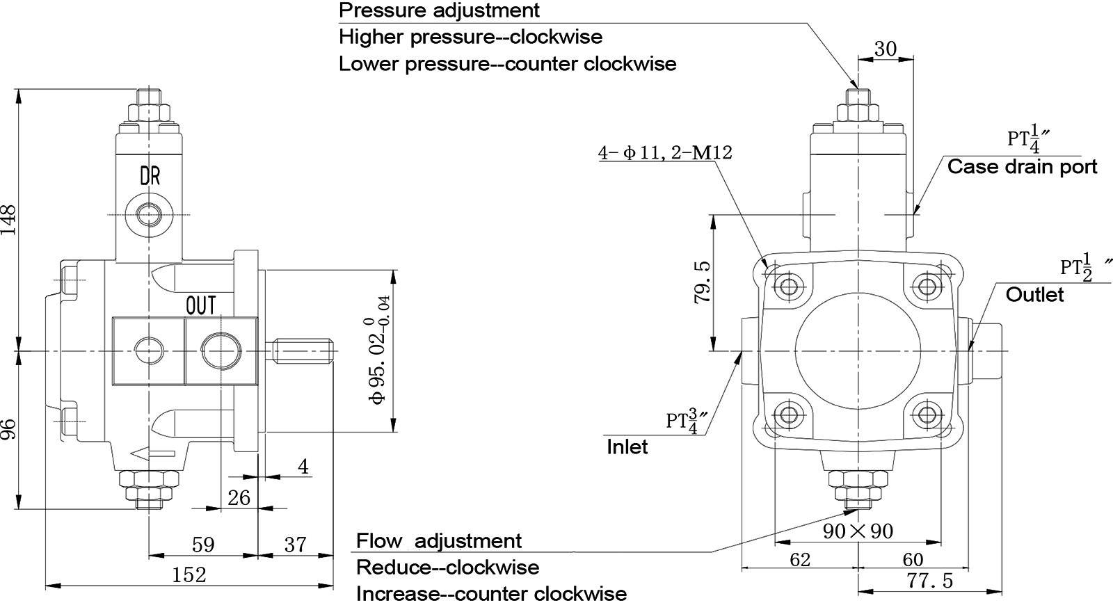 (4)Drain connection must be piped directly to tank and below the oil level with a back pressure not exceed 0.03MPa.